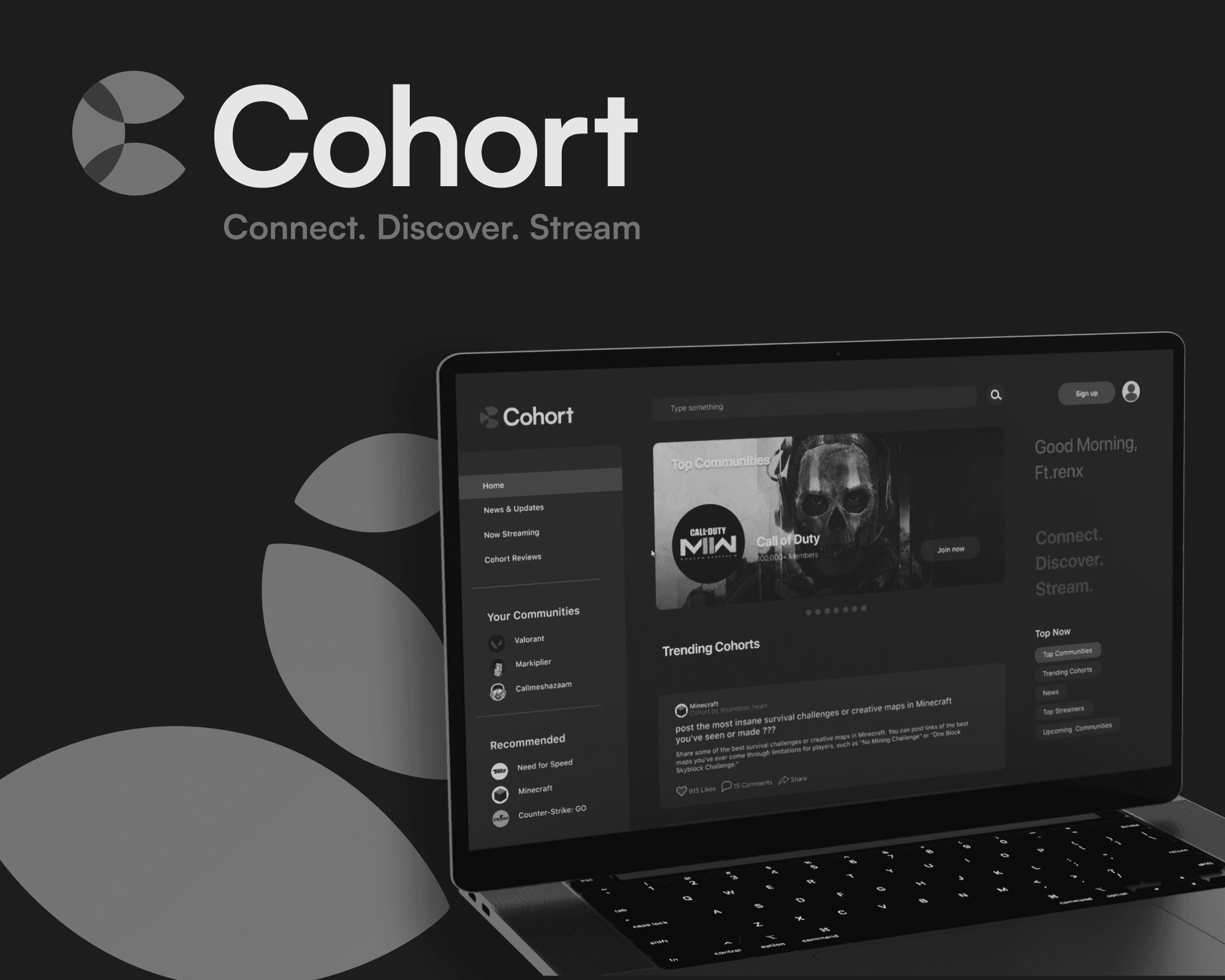 Cohort is a community budling and news platform for gamers where they get to connect, discover and stream their favorite games